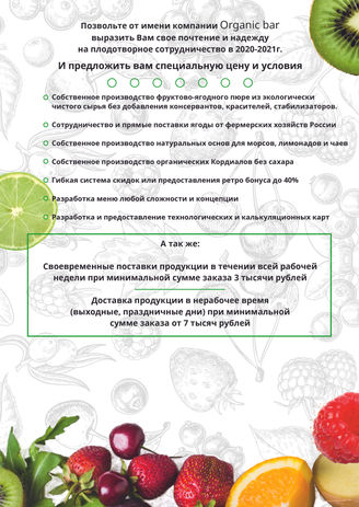 Прайс-меню компании Organik bar